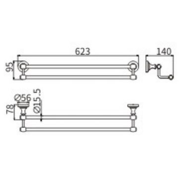 Полотенцедержатель Ceramalux (Керамалюкс) Bianco 52009 двойной, хром