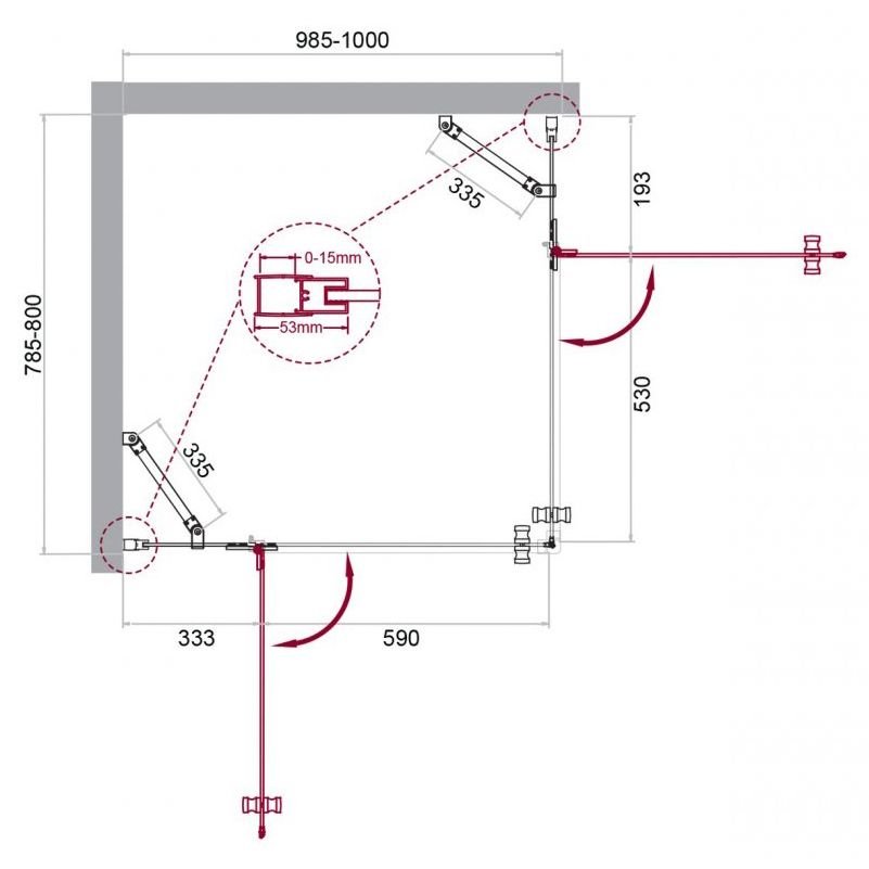 Душевой уголок BelBagno (Бельбагно) KRAFT-AH-22-100/80-C-Cr-L хром, стекло прозрачное 6 мм (1000х1950х800)