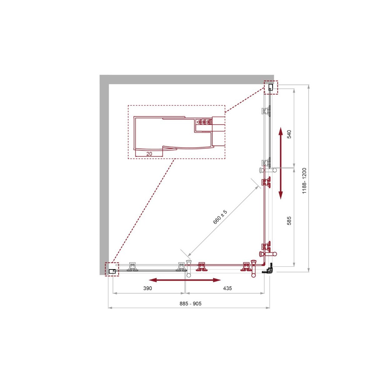 Конструкция двери: раздвижная, двойные подшипниковые ролики.