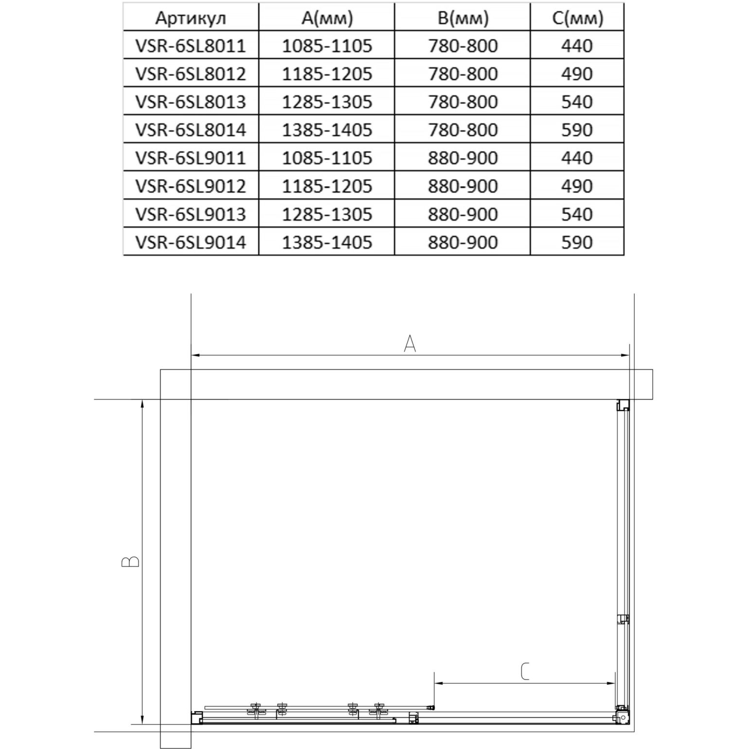 Душевой уголок Vincea (Винчея) Slim 8 мм, 1400х800 мм (габариты площадки) , хром, стекло прозрачное VSR-6SL8014CL