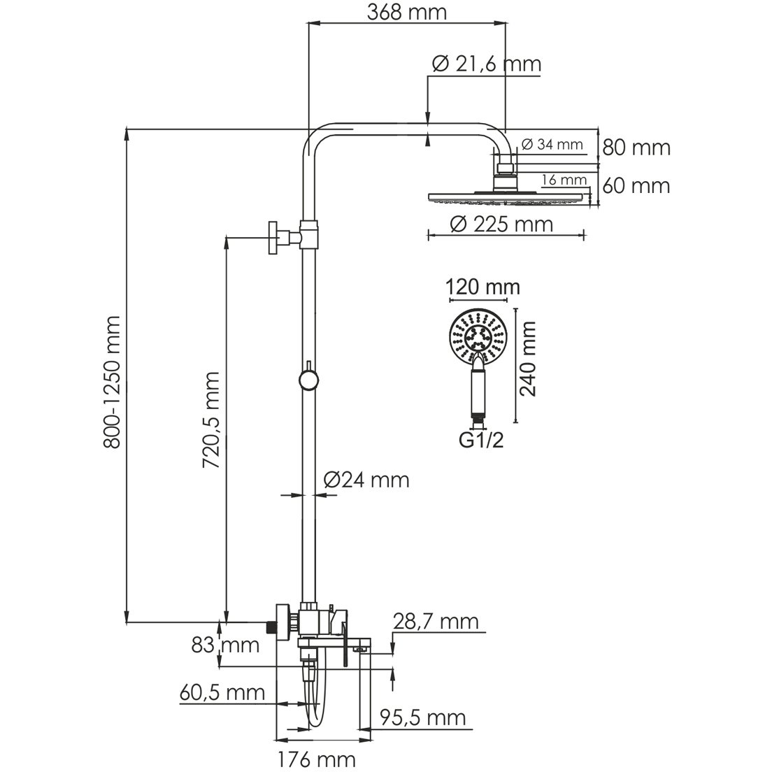 Стойка для душа, Ø 24 мм регулируемая по высоте