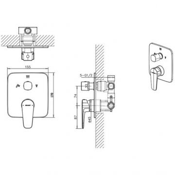 Смеситель для душа встраиваемый на 3 потока Bravat Source PB8173218BW-3-ENG, черный