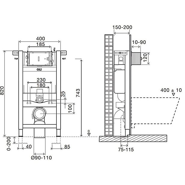 Система инсталляции с бачком OLI Evo/Speed, механика предназначена для установки унитазов. Модуль подходит для установки новой сантехники на легкие и несущие стены.