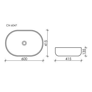 Раковина чаша накладная овальная (цвет Белый Матовый) Element 600х415х135мм