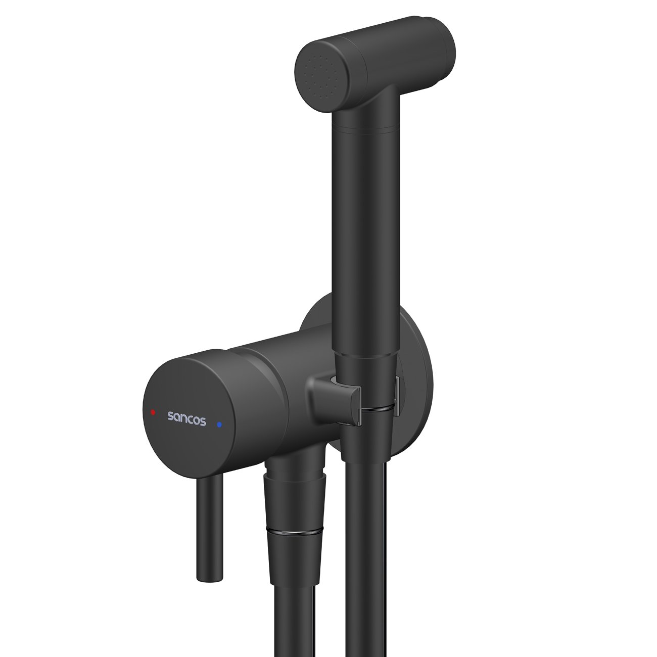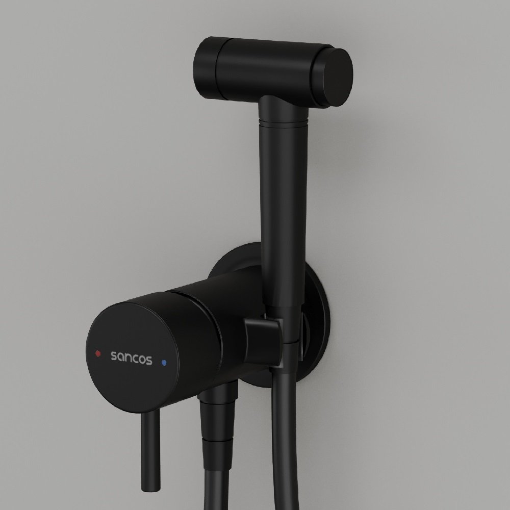 Гигиенический душ Sancos (Санкос) Atom со смесителем, черный матовый, (SC2001MB)