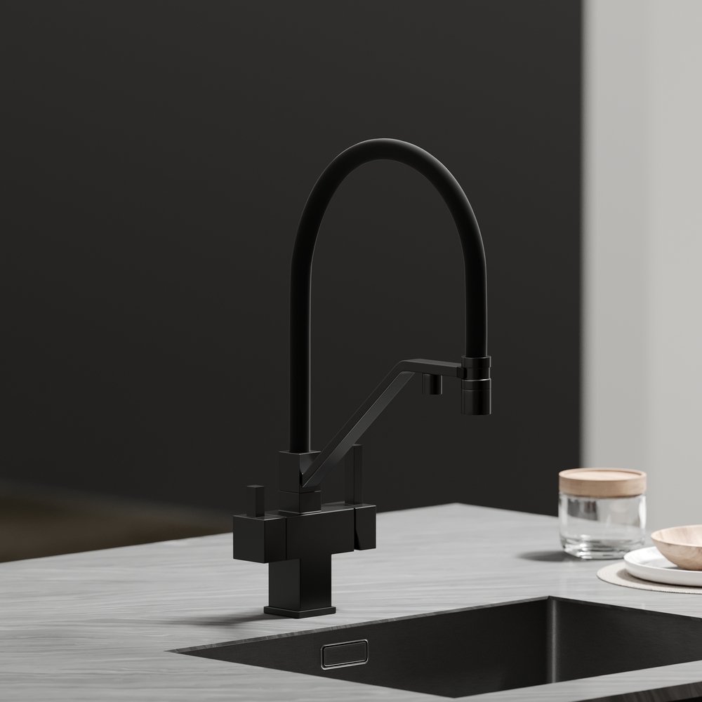 Смеситель для кухни Sancos (Санкос) Loro с гибким изливом под фильтр, матовый черный, (SC4007MB)