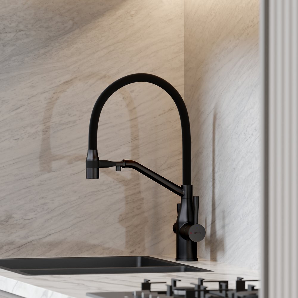 Смеситель для кухни Sancos (Санкос) Orta с гибким изливом под фильтр, матовый черный, (SC4008MB)
