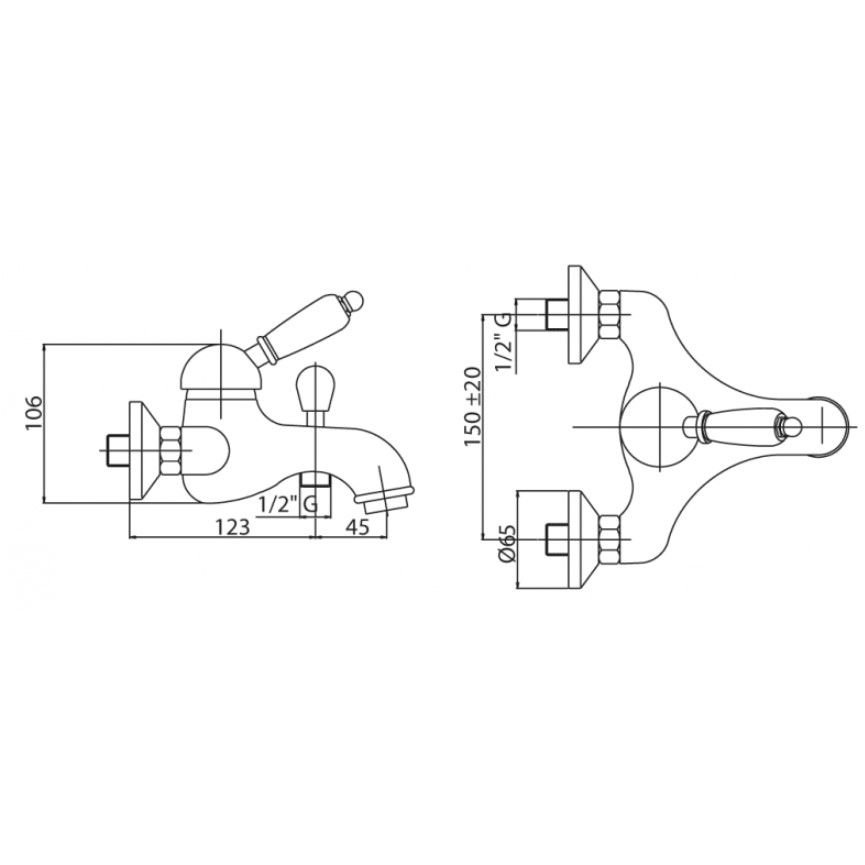Смеситель для ванны и душа Cezares (Цезарис) однорычажный с ручным душем, исполнение золото VINTAGE-VDM-03/24-Sw