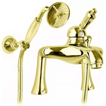 Смеситель на борт для ванны и душа Cezares (Цезарис) однорычажный, исполнение золото, ручка белая ELITE-PBVM-03/24-M